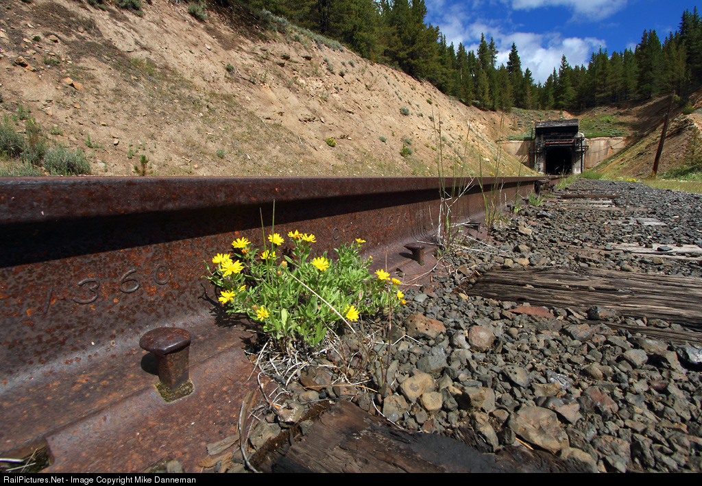 Flowers begin to grow between slag ballast and rusty 136-pound rails laid by Rio Grande in 1970’s, as nature slowly reclaims what is hers on top of Colorado’s Tennessee Pass on August 12, 2015. A look into the east portal of the Tennessee Pass tunnel reveals a bright light to the west, which unfortunately, is just the other end of an empty and silent bore. Will a train ever run here again? A cool breeze drifting from the dark bore seems to be saying “it’ll be a cold day in hell…”
