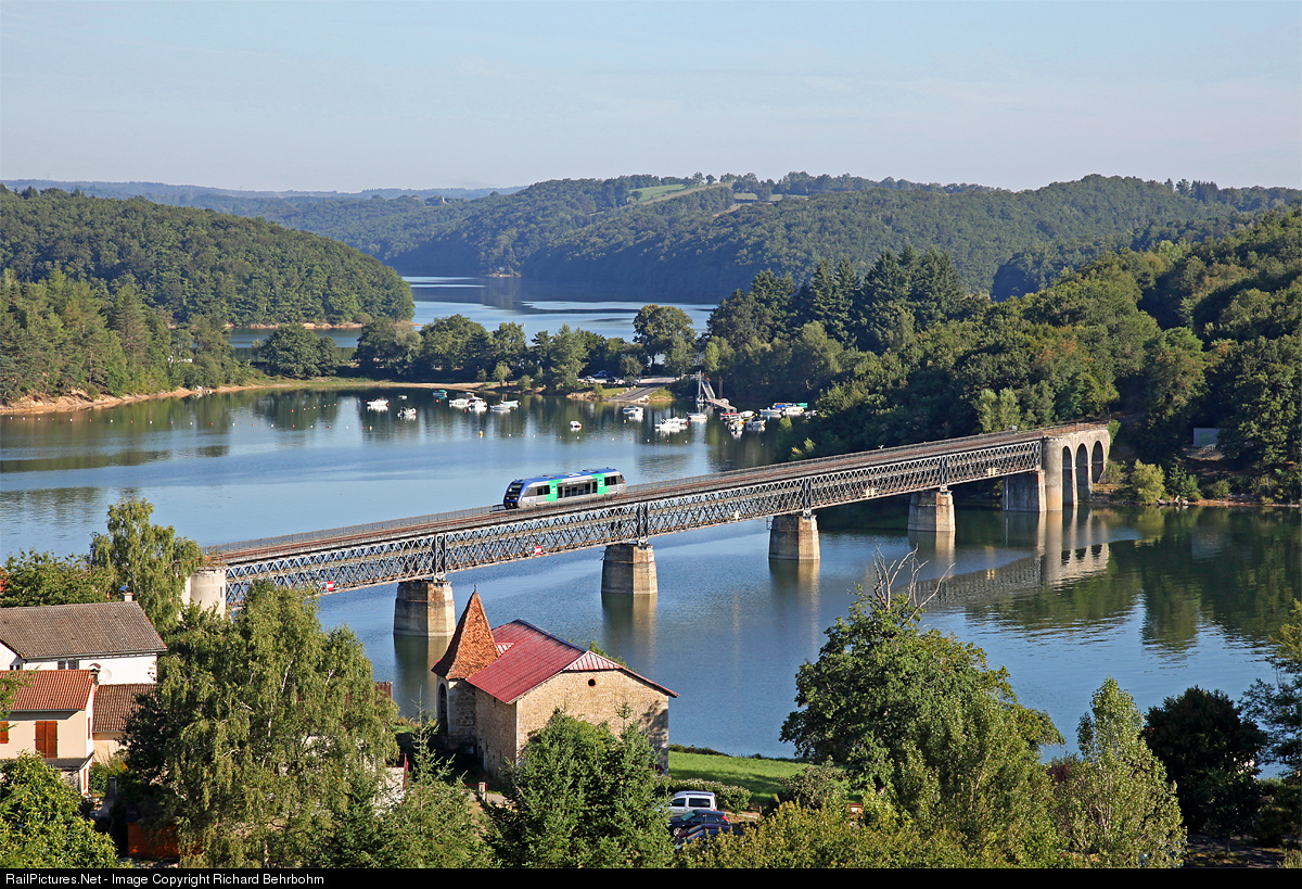 A TER (train express regional) Capdenac - Aurillac is crossing the Ribeyrès-Viaduct.