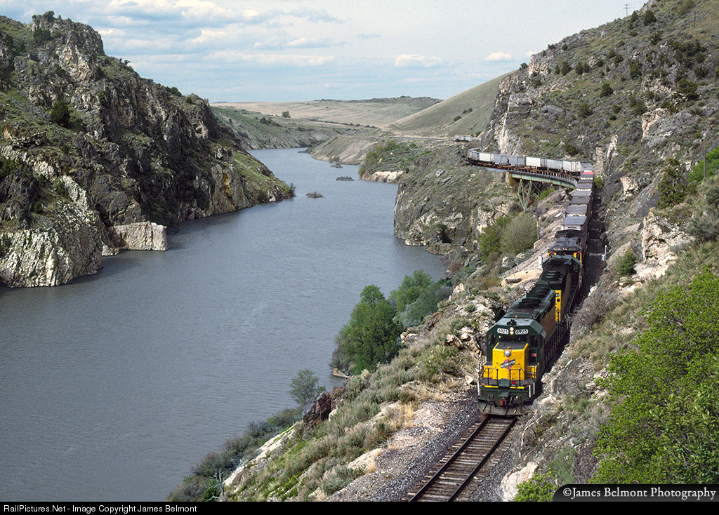| Due to a derailment on the Overland Route in Wyoming, the NPLAT makes a rare detour via Utah's spectacular Bear River Gorge on April 30, 1994. |