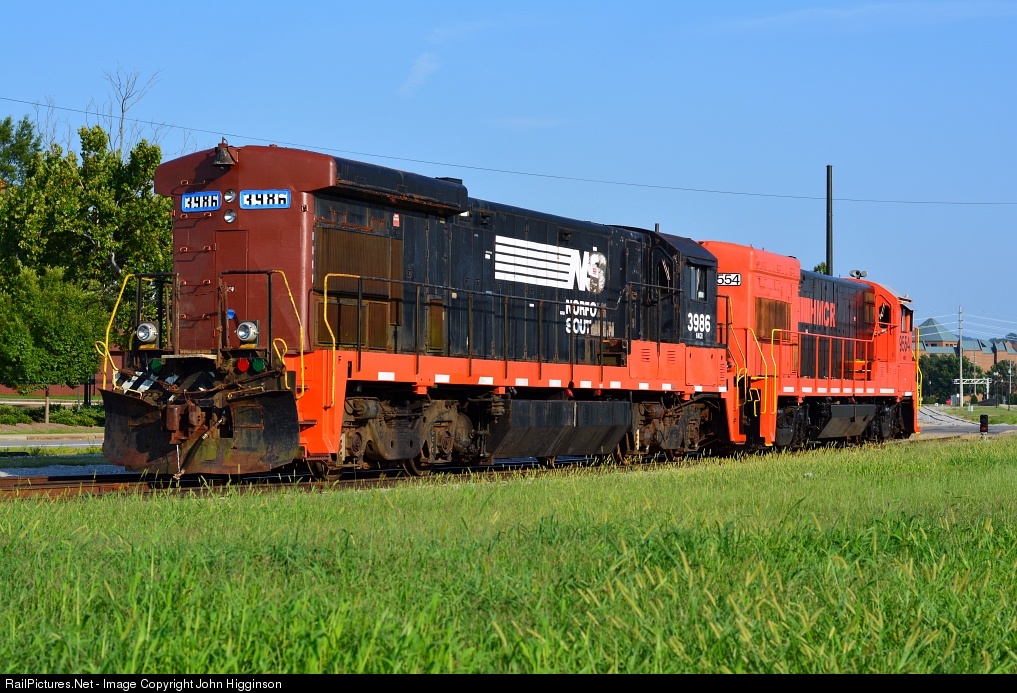 During the first half of 2015, H&MC acquired two 1970s-vintage GE units, a marked shift from the EMD switchers which previously worked this shortline. Since its career with Southern/NS ended, the 3986 has spent nearly twenty years floating around to various shortlines in and around Alabama, including the Pine Belt Southern and most recently the Sequatchie Valley. At the time of this photo, the unit was in the process of finally losing its NS identity and being repainted into H&MC orange and black.