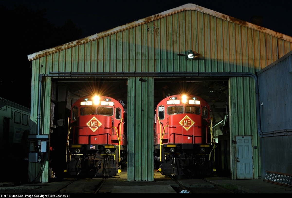The Morristown & Erie's two ALCO C424's are seen resting at the Morristown Shops after a busy week on the M&E. Normally closed after dark, the shops remained open as work continued on ME 23 as the unit is to be primed and ready for paint by the end of the weekend.