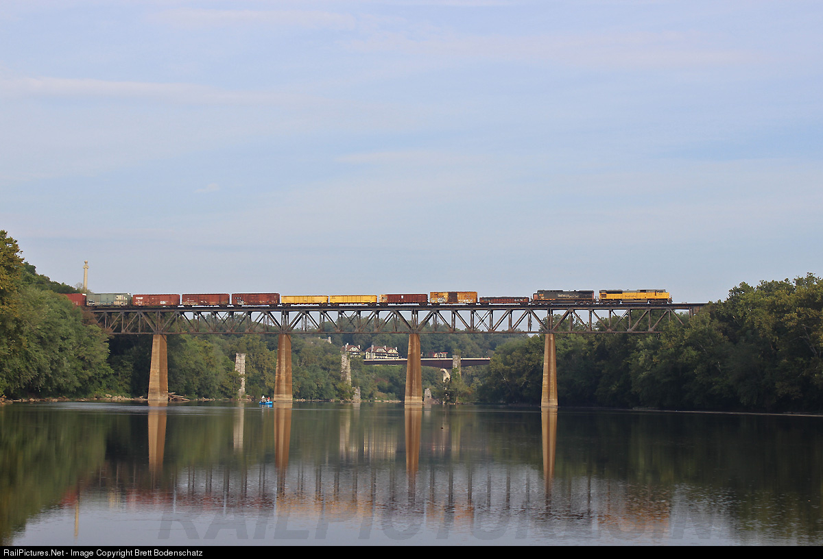 NS 38Q with an excellent lash up heads north over the Potomac River.