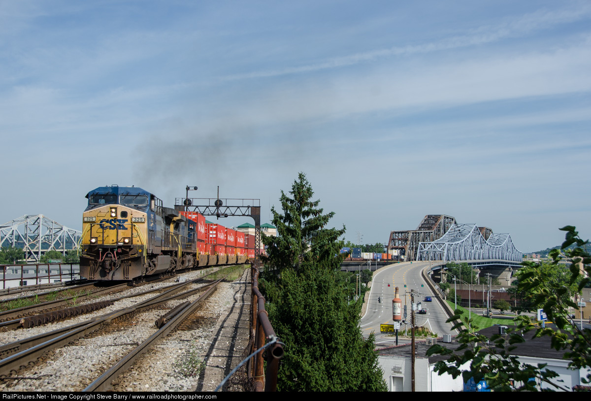 | A southbound CSX train rolls across the Ohio River out of Cincinnati on the C&O Bridge, providing a nice diversion a few hours before the beginning of Summerail 2015. |