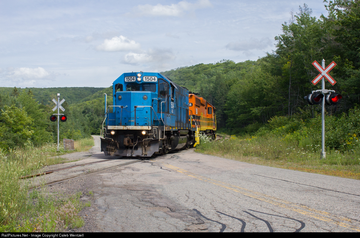 RailPictures.Net Photo: LLPX 1504, CBNS 3366 Cape Breton & Central Nova Scotia Railway EMD GP15-1 at River Denys, Nova Scotia, Canada by Caleb Wentzell