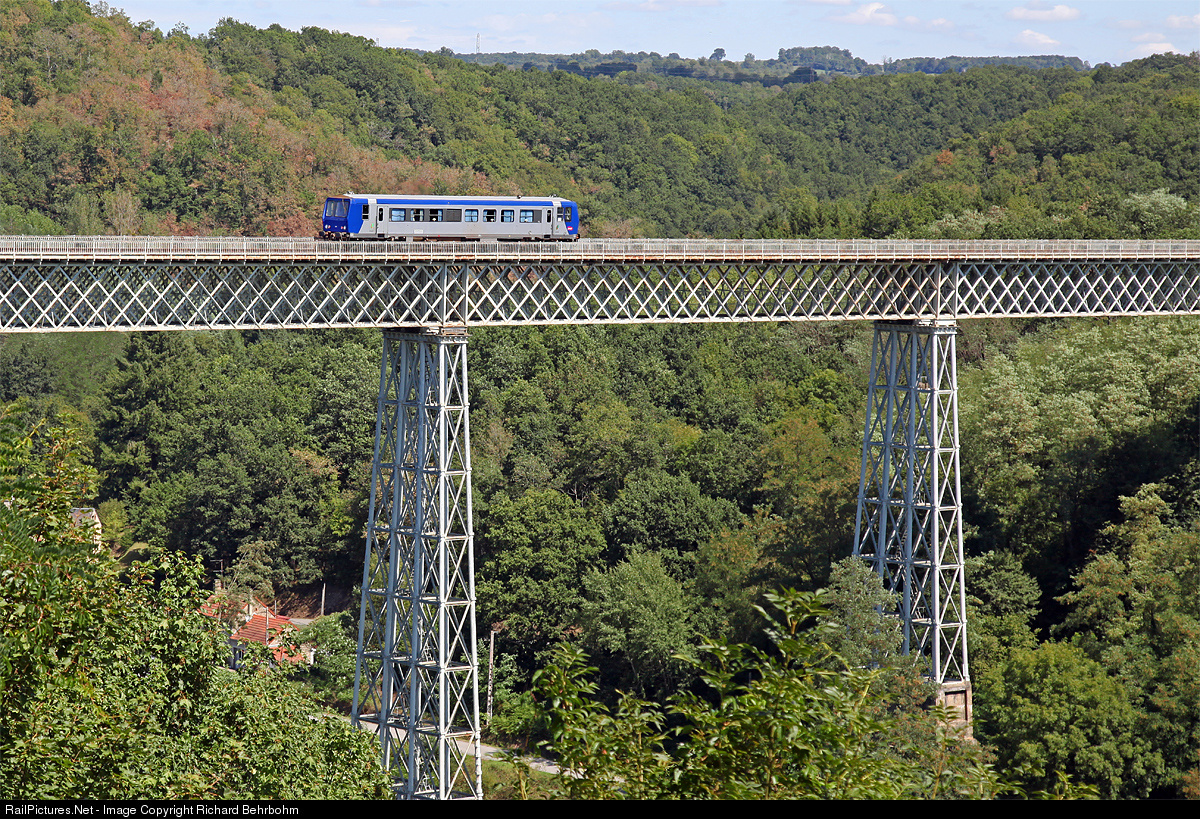 An unknown X 2200 as TER (train express regional) Limoges - Montluçon is crossing the Busseau-Viaduct.