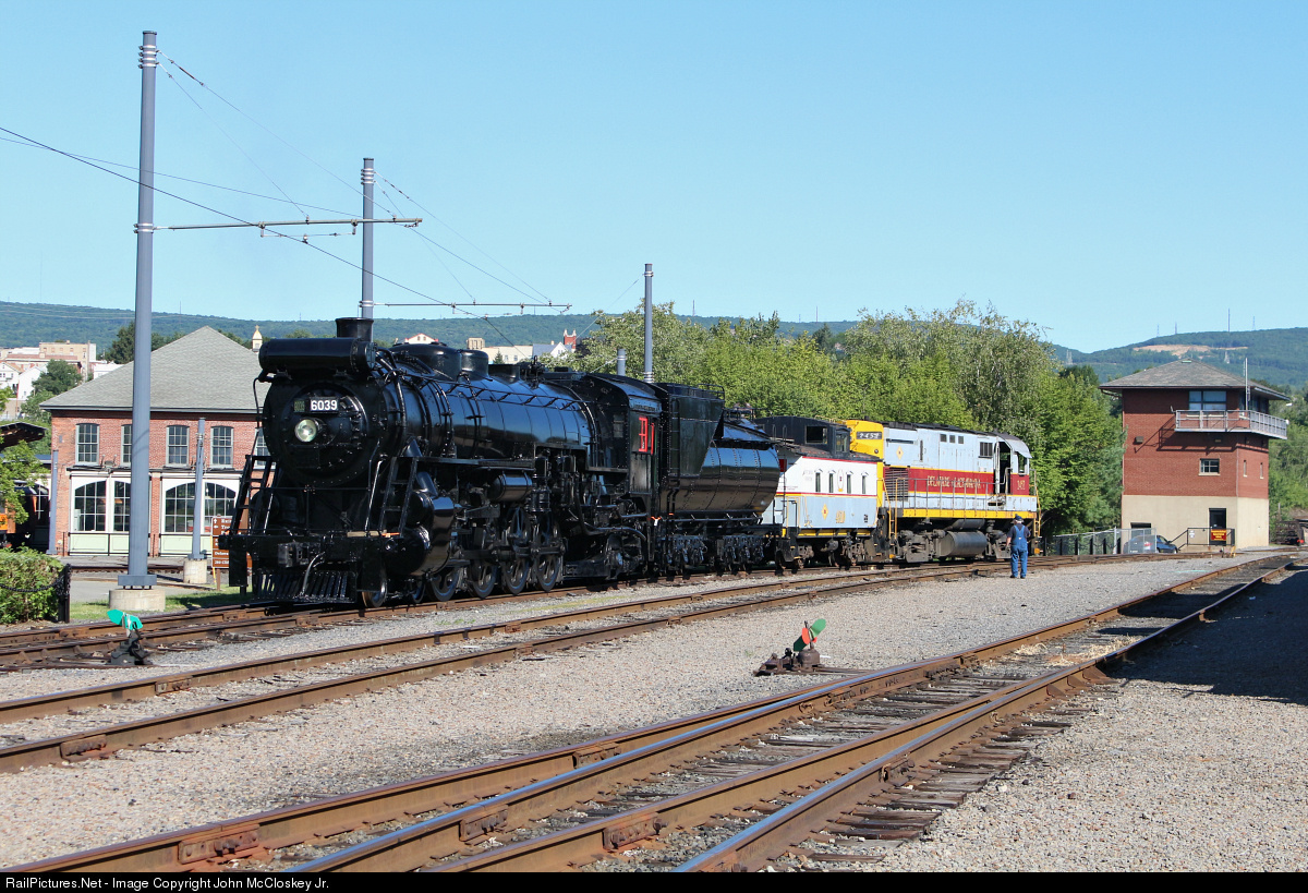 DL ALCO #2457 was working around Steamtown on Saturday Aug. 22nd. During its time with a Steamtown crew onboard, it moved GTW #6039 around the property a bit. In this scene the crew is seen pausing to throw a switch near the Bridge 60 Dispatch Tower.