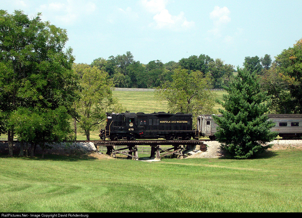 While the star of the of show for the Lincoln Steam Train Weekend at the Bluegrass Railroad Museum is definitely the steam locomotive "Leviathan", the power on the other end of the train for Saturday's 2pm trip, Norfolk & Western GP9 675, is also worthwhile, seen here leading the train across the trestle at Trackside Farm.