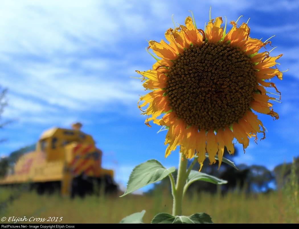 An abundance of rain over the last several months has produced fields upon fields of sunflowers. Featured is one with a now retired Santa Fe Southern locomotive in the background.