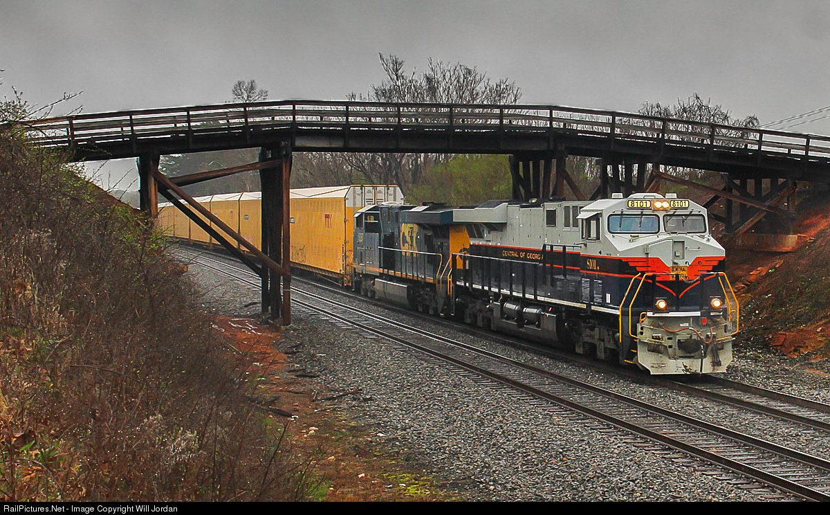 NS 237 glides into Central, SC with the Central Of Georgia, NS 8101 leading a CSX GE on a nasty, rainy morning.