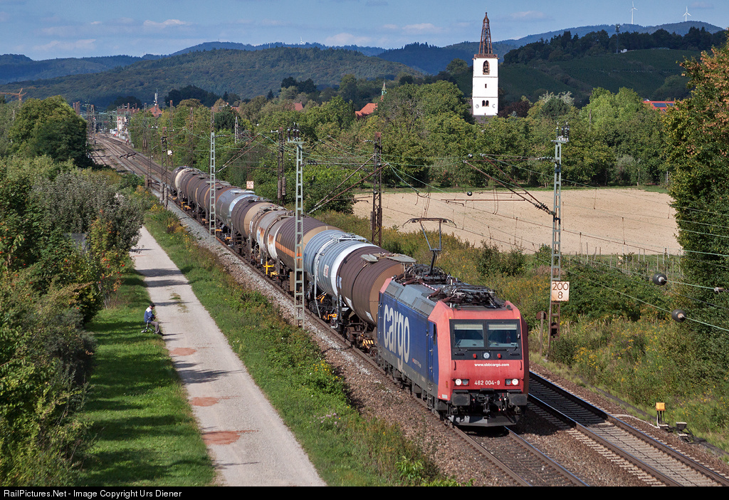 SBB Cargo Re 482 004 is leading tank train DGS 49069 from Karlsruhe (Germany) to Basel (Switzerland).