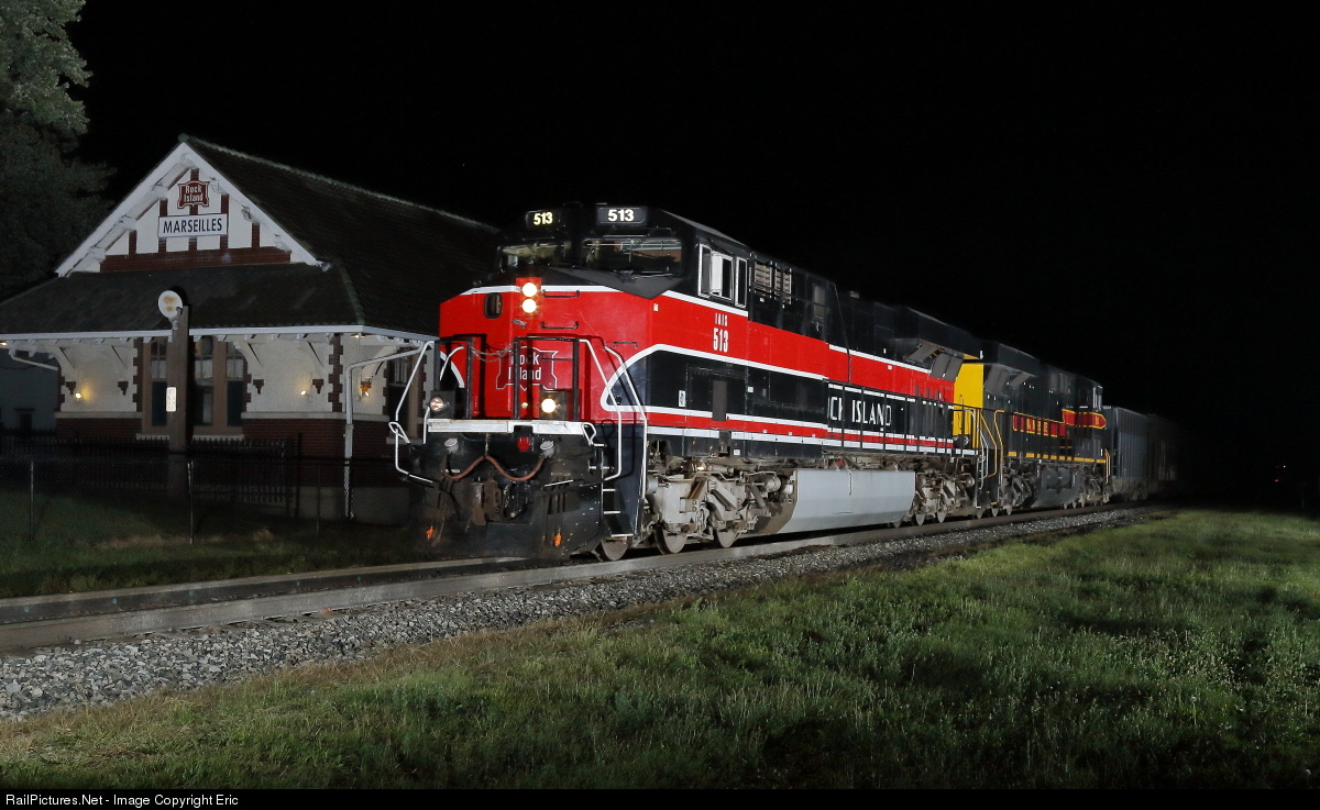 This is IAIS's daily Blue Island, IL to Council Bluffs, IA freight. Seen here passing, a beautifully restored ex Rock Island passenger depot, around 10pm.