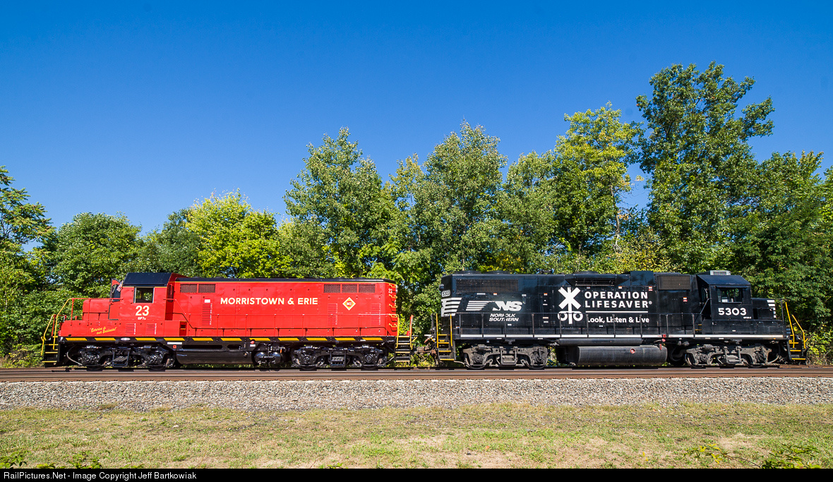 Morristown and Erie's freshly painted #23 GP7u and NS 5305, Operation Life Saver, are to be displayed in Boonton, NJ for the URHS's Heritage Festival on September 20th,