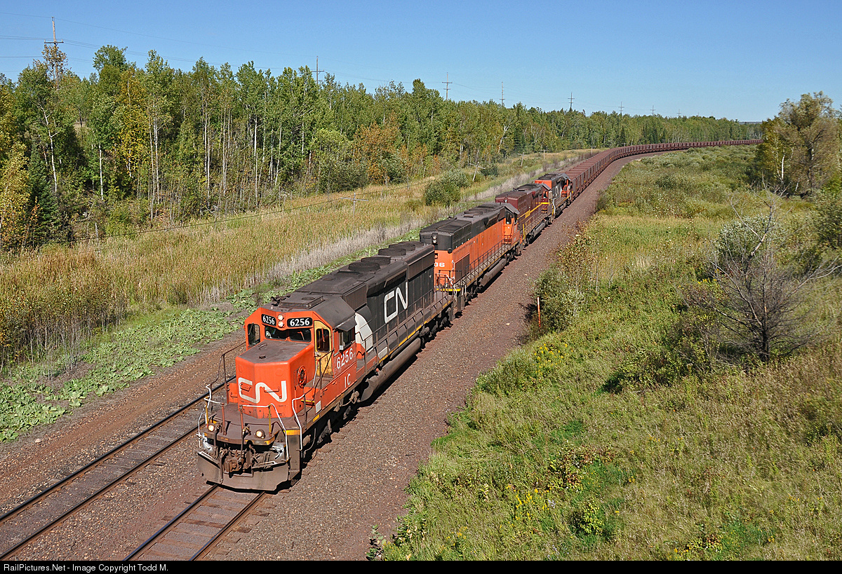 | The days are getting shorter and the leaves are starting to turn color as summer gives way to fall and it seems the power desk at CN are in that fall mood already as a colorful lash-up rolls through Jones with 144 ore cars in tow for loading at U.S. Minntac |