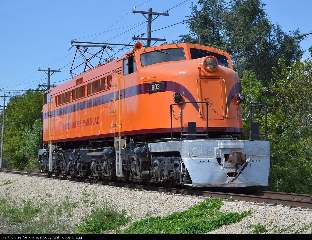 South Shore "Little Joe" 803 heads light westbound along the IRM mainline, making a rare appearance in operation for Showcase Weekend.