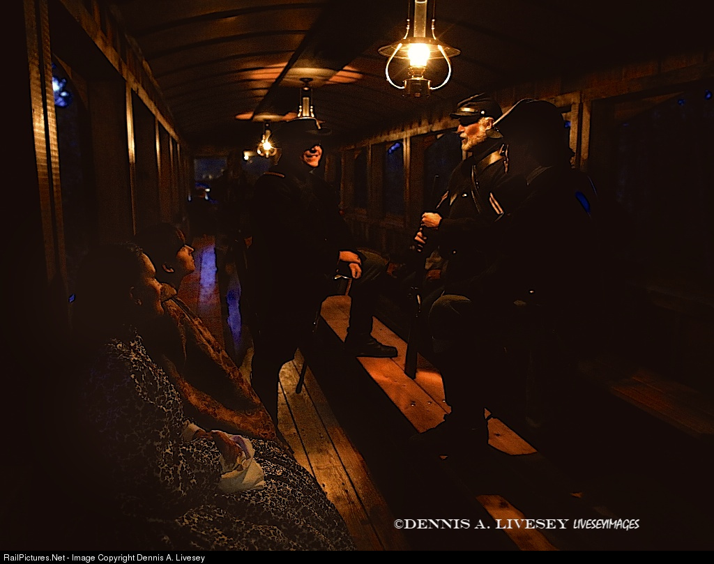 Civl War reenactors are seen aboard Steam Into History's train to Hanover Junction PA. Having worn costumes myself, I understand how wearing clothing different from your everyday ones does affect how you feel and stand. Note how the men in military uniform strike very powerful, masculine poses while the women in their hoop skirts are demure and in repose. Riding at dusk, gently rocking in this car, hearing the chuff and the whistle moans of the steam locomotive "York", was one of my greatest time machine experiences ever. I highly recommend you go.