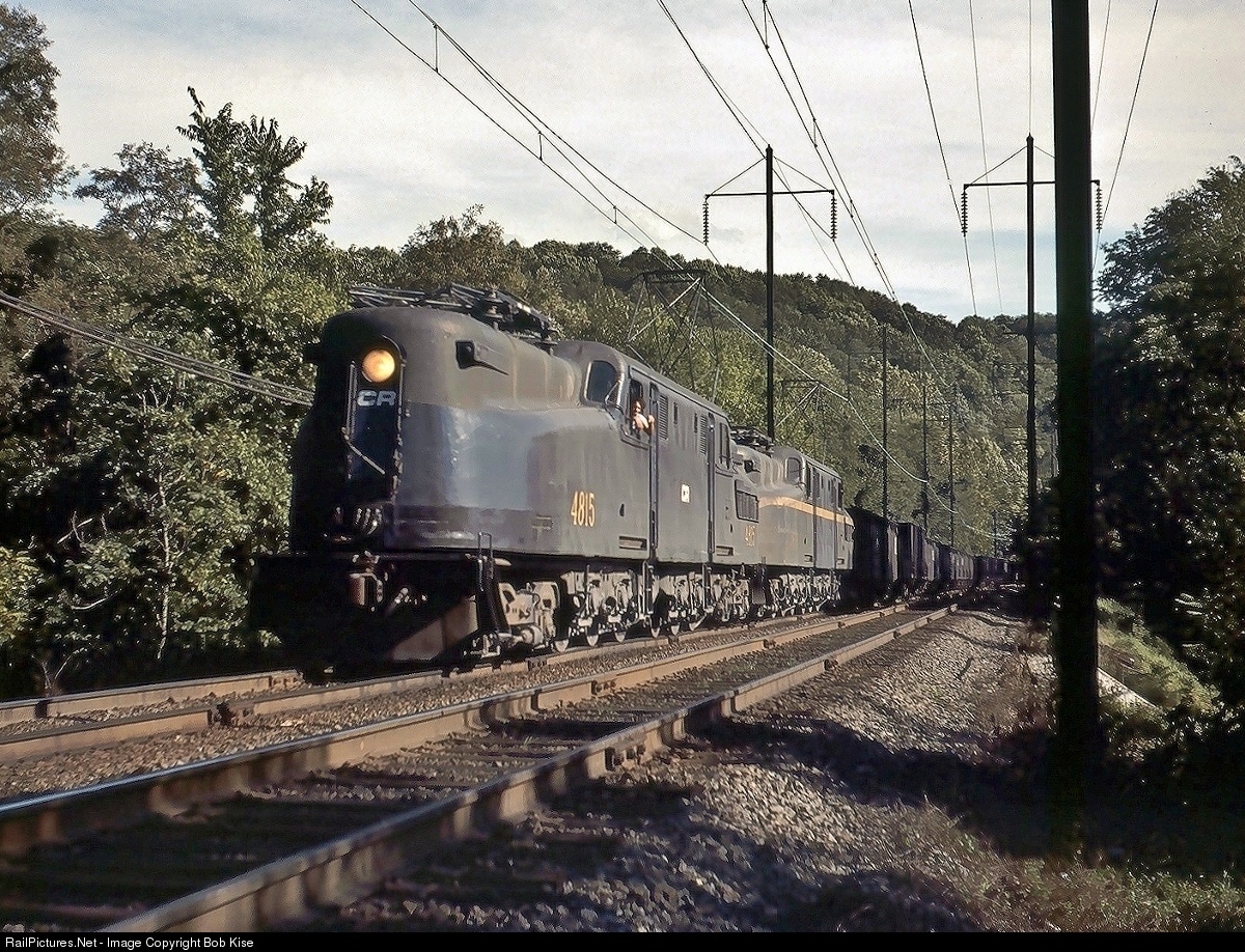 CR 4815 West clatters downgrade with a mineral train at the base of Turkey Hill, nearing Port Interlocking. Today, this line is a rail-trail, with parking located at- "Enola Low Grade Rail Trail," 2459 River Rd, Washington Boro, PA 17582.
