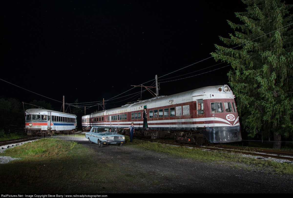 It's an all-Red Arrow reunion as Liberty Liner "Independence Hall" is joined by Brill Bullet car No. 205 for a night scene at the Rockhill Trolley Museum. Both cars operated on the Norristown High Speed Line between Upper Darby and Norristown in suburban Philadelphia.