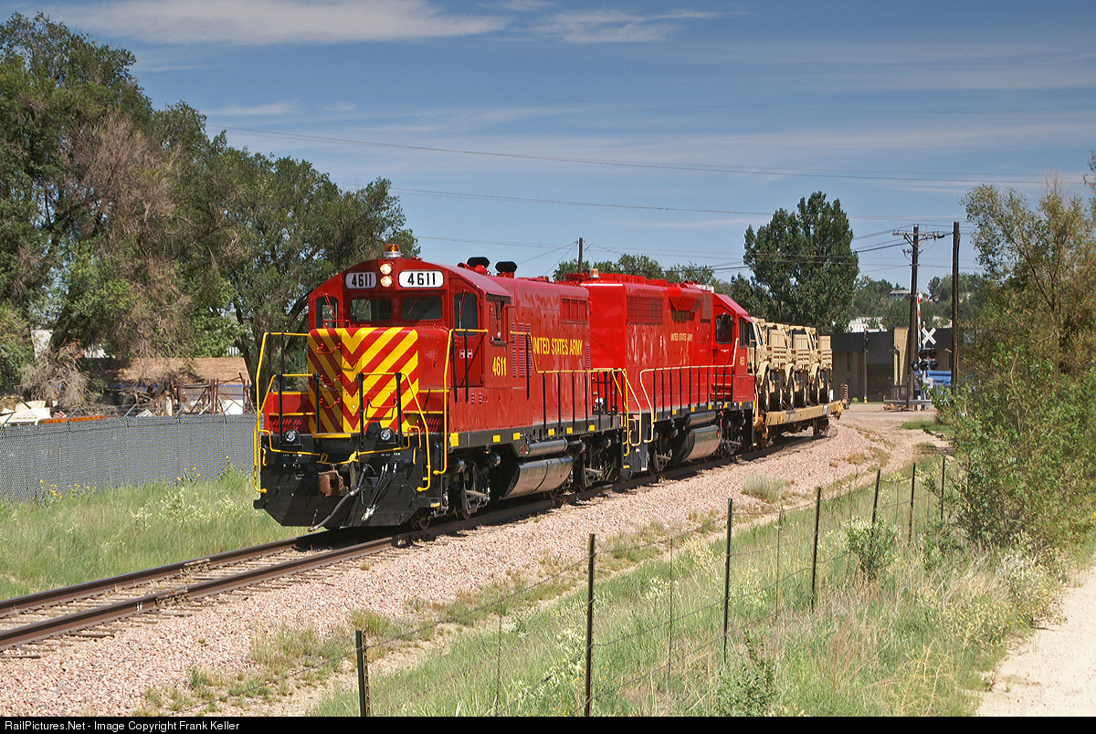 Although I lived in Colorado Springs for 17 years I could count the number of times I was able to photograph the military operations of Fort Carson. They often came off the property to pick up trains or cars at the small yard in Kelker. One of the few times I caught the train was after a small derailment and the power came up to Kelker to pick up the derailed car and return to the base.
