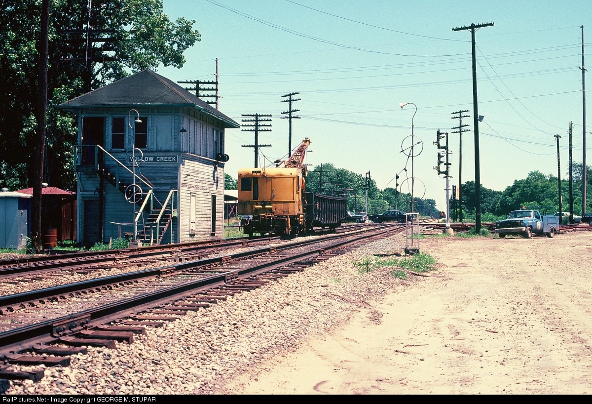 A Conrail interlocking tower scene from 1983 at Willow Creek in Portage Indiana. A few decades ago the B&O, NYC Michigan Central, and Wabash 4th District crossed here. Currently this busy junction is controlled by CSXT.