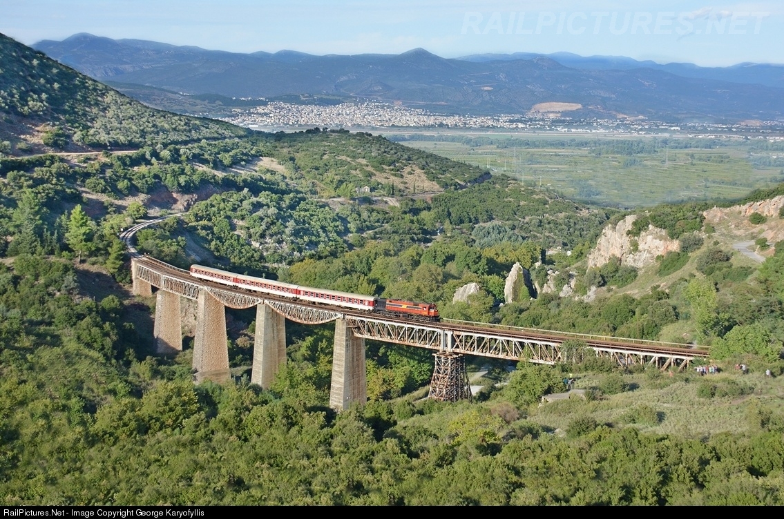 The excursion train that hired by English railfans is doing a photostop at the historical bridge of Gorgopotamos with us and the English railfans capturing it with our lenses in these wonderful place outside of Lamia before starts ascending to Bralos.