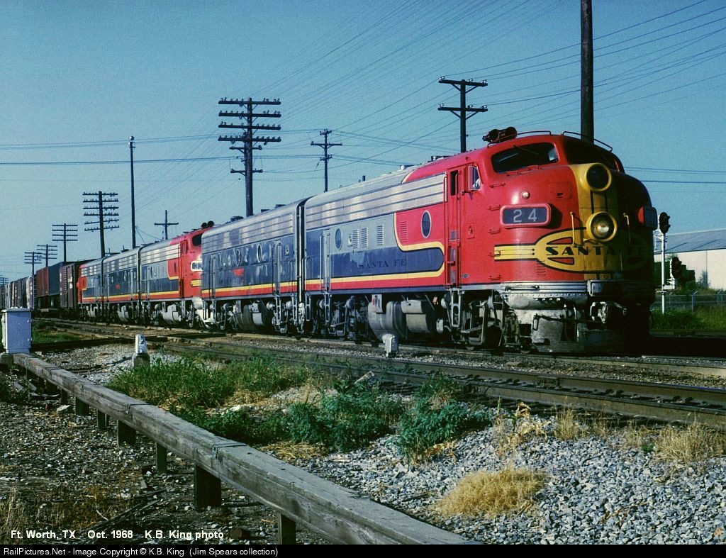 RailPictures.Net Photo: ATSF 24L Atchison, Topeka & Santa Fe (ATSF) EMD F3 at Fort Worth, Texas by K.B. King (Jim Spears collection)