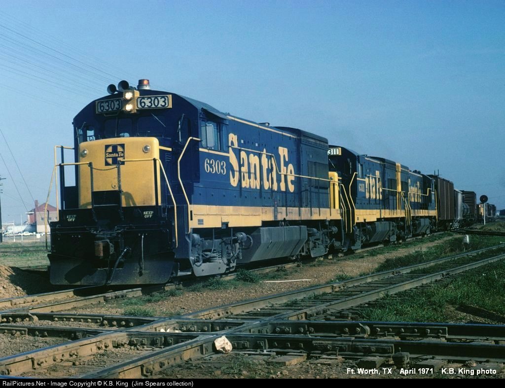RailPictures.Net Photo: ATSF 6303 Atchison, Topeka & Santa Fe (ATSF) GE U23B at Fort Worth, Texas by K.B. King (Jim Spears collection)