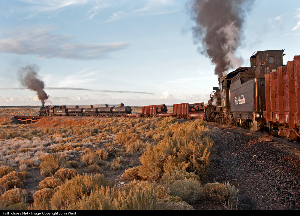 The ex-DRGW 484 and 489 head a 35 car train west from Antonito with the sun just over the horizon. This was a Historic Transport Preservation (Steam Specials) charter. The fact so many freight cars are serviceable is a testament to the vision and hard work of the Friends of the C&TS who collect, restore, and maintain these former DRGW cars. Most of these cars have not seen revenue service since 1968 (or before), and some were scattered as far away as Alaska.