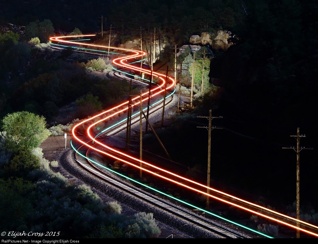 After working what seemed to be an endless 10 hour job, I couldn’t wait to go home, only to realize that an Amtrak hadn't passed by. So I ventured out to the Pass, hiked to a favorite location of mine, and waited. Featured here, lighting up an otherwise moonlit night, Amtrak’s Chicago bound Southwest Chief #4 negotiates the twists and turns of Glorieta Pass. After getting caught up in the aftermath of a BNSF derailment in western New Mexico; the train is running approximately 7 hours behind schedule as it makes an unusual nighttime appearance on what is almost always a daytime setting.