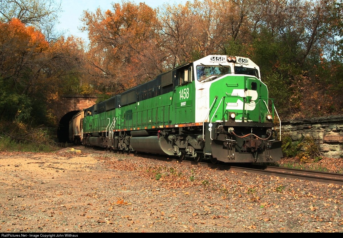 The St. Paul Tunnels: The BNCP transfer is Popping out of a tunnel that looks more at home in Southern Missouri, Northern Arkansas, or Kentucky, rather than downtown St. Paul, MN. BNCP is bringing 88 cars down the hill today from Northtown Yard, to the CP at St. Paul. The tunnel takes the St. Paul Sub under the Midway Sub above, and at one time was actually double tracked. Taken while off duty, wearing full PPE.