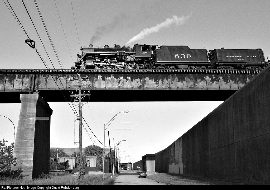 TVRM's restored Southern Railway 2-8-0 #630, built in 1904, leads the NS New Royal Palm excursion train as it crosses over Mehring Way near downtown Cincinnati, inbound to Gest Street Yard behind Cincinnati Union Terminal to turn and service the train.