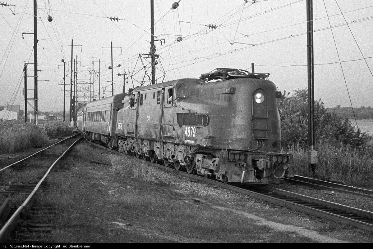 FINIS - The last few seconds of the GG-1's illustrious career are ticking off as 4879 leads NJT commuter train 3323 off of the Raritan Bay Swing Bridge at sunset. When 4879 stopped at the South Amboy Station in less than a mile, the GG-1 ended a nearly 50 year revenue service career, with the first GG-1, 4800, having been delivered in 1934. The last operations of a GG-1 in any capacity were the next day as NJ Transit operated special excursions to mark this milestone. If you look closely, you can see streamers on the front pantograph as well as someone recording a movie of this run from the rear cab.
