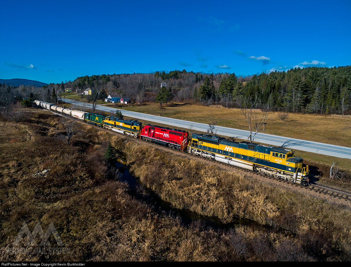 November 23, 2015 marked a sad day in Green Mountain Railroad history, as the final ex-GMRC GP40 made its farewell voyage across the namesake piece of railroad. GMRC train 263-23 heads up grade at Mount Holly, Vermont, with VTR SD70M-2 432 and 431 book-ending VTR GP40-2 307 and GMTX GP40 3011 in tow. The GMTX 3011 is the former GMRC 304 and will join its sister ex-GMRC GP40 305 (GMTX 3012) at East Deerfield, MA to enter service on Pan Am Railways.