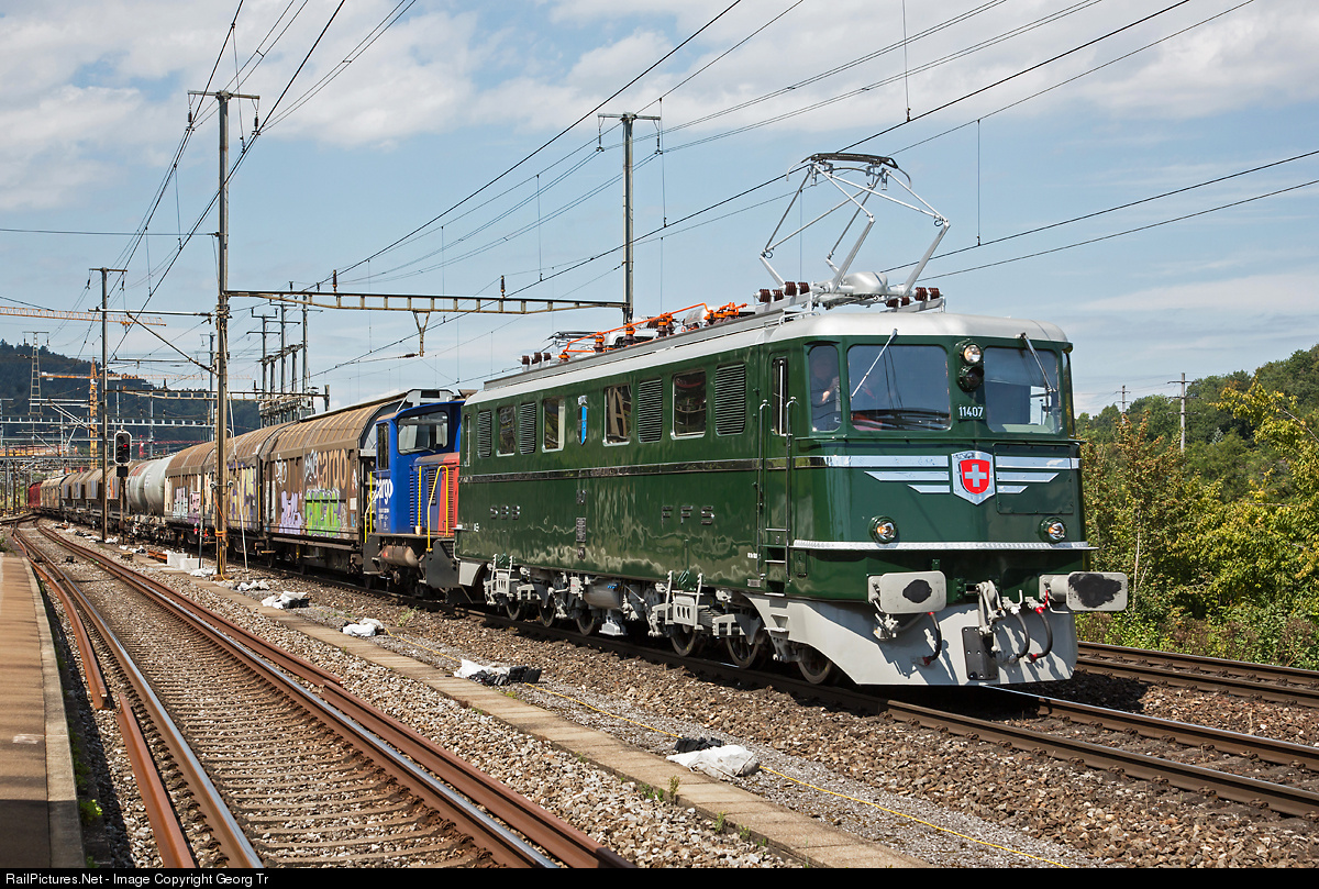 | On this day, a locomotive engineer of SBB Cargo was retired. For his very last train the immaculate Ae 6/6 # 11407 "Aargau" of association "Mikado 1244" was put in service as a surprise (by permission of SBB Cargo). Freight train 63257 from Rothenburg via Zofingen-Lenzburg-Heitersberg to Limmattal shunting yard is passing through Killwangen-Spreitenbach station. |