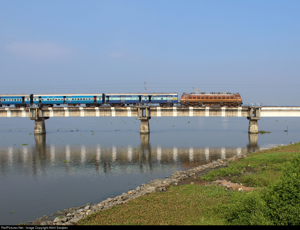 Tirunelveli-Bilaspur express on the bridge over Kaithapuzha lake.