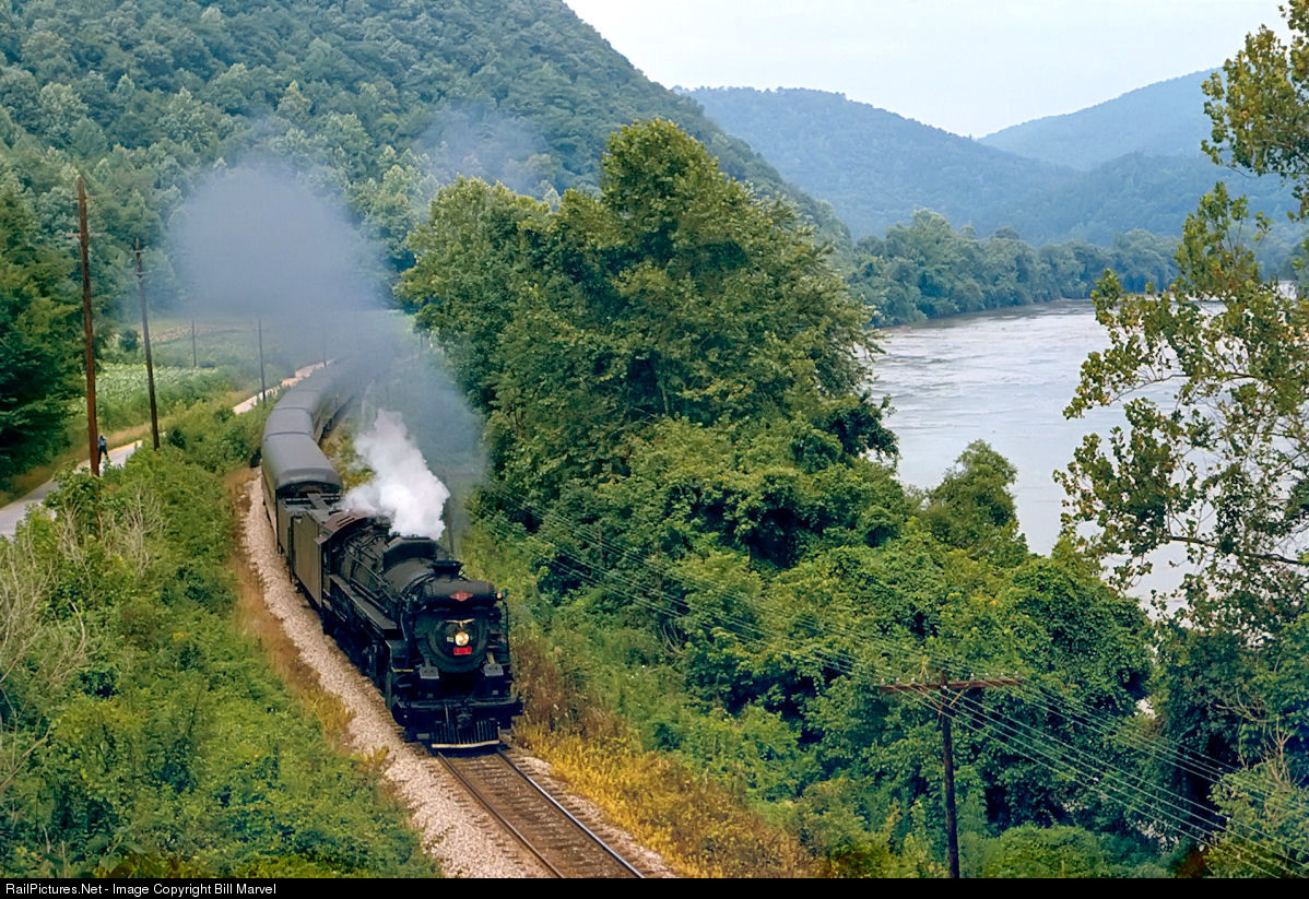 The Southern Railway was notoriously conservative in matters of steam, but if the road had acquired modern Lima superpower, here’s what it might have looked like. On July 29, 1977, we are alongside the French Broad River watching from U.S.25 at Wolf Creek, Tennessee, as Texas & Pacific 610 makes its way from Knoxville, Tennessee, to Salisbury, North Carolina, with an eight-car ferry move. The engine, which led the American Freedom Train through much of 1976, has been leased by the Southern for a series of excursions that will continue into 1980. In 1981 the big engine will be retired for display at the Texas State Railroad in Palestine, and listed on the National Register of Historic Places. It is said to be in operable condition, were any railroad willing to run it on track that could take it.
