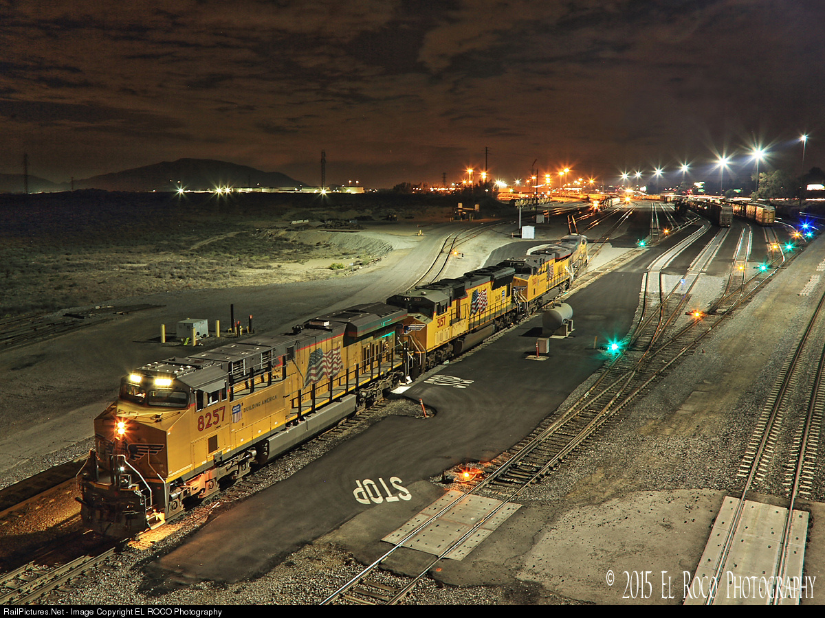 Road Power at West Colton - Once the points have been properly aligned, the engines will make a reverse movement back into the yard tracks and hook up to a train that has been assembled there.