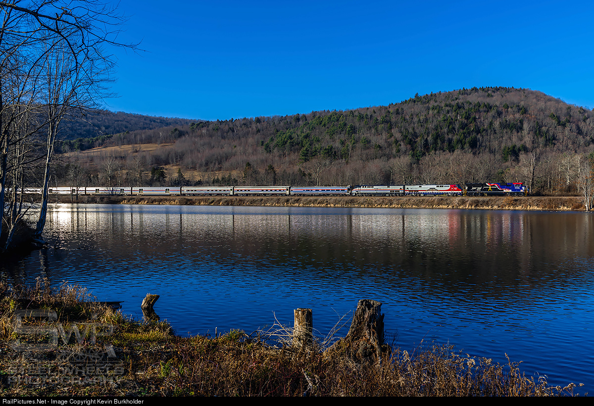The annual US Marine Corps. Toys for Tots train between Binghamton and Rouses Point, New York, kicked off its maiden voyage in style with new sponsor, Norfolk Southern, added to Amtrak and Dunkin Donuts this year. NS supplied not only personnel but the "Honoring Our Veterans" SD60E #6920 to lead Saturday, December 5th's trip from Binghamton to Schenectady. The train is seen rolling northbound at Schenevus, NY with Amtrak Veteran's P42 #42 and P40 #822 and the special train.