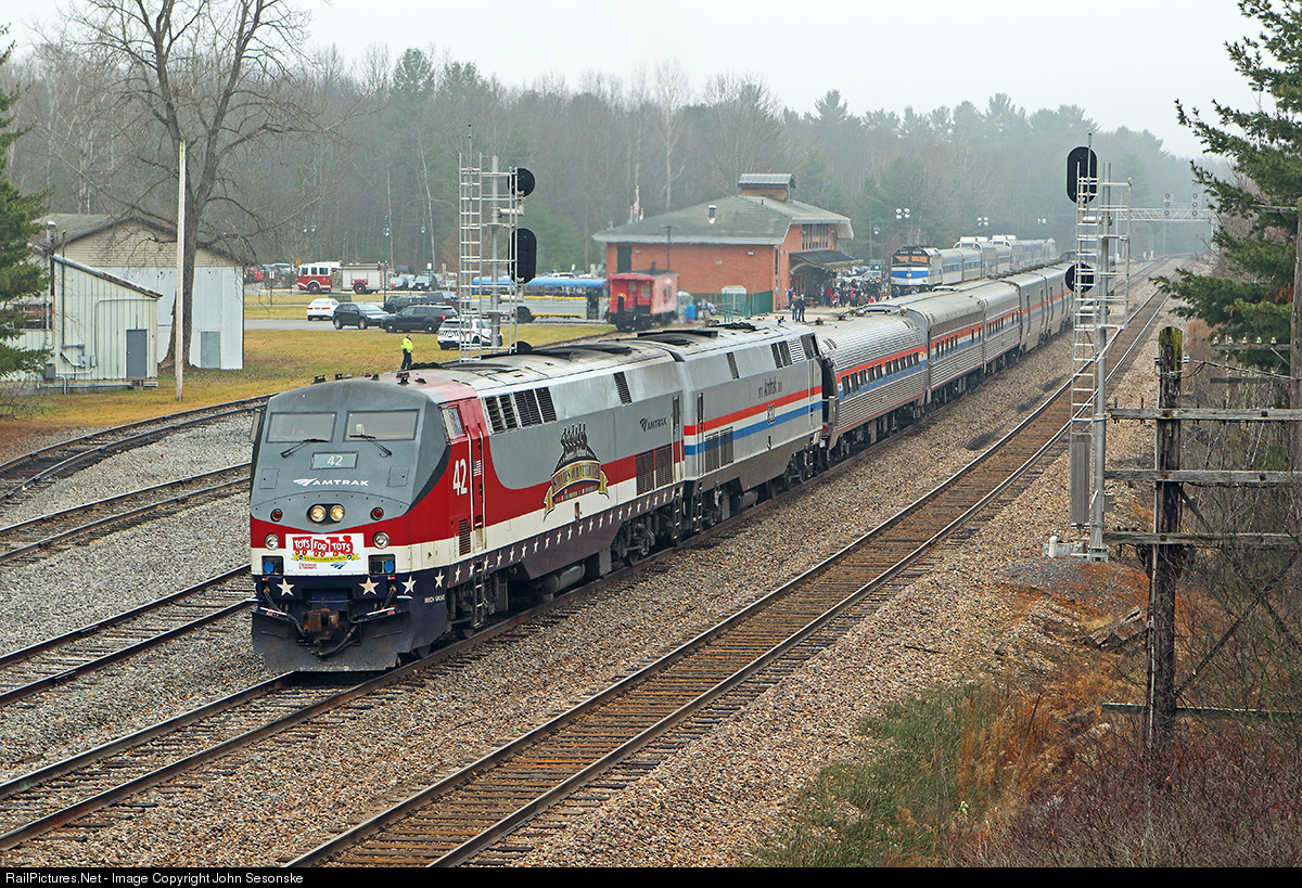 RailPictures.Net Photo: AMTK 42 Amtrak GE P42DC at Saratoga Springs, New York by John Sesonske