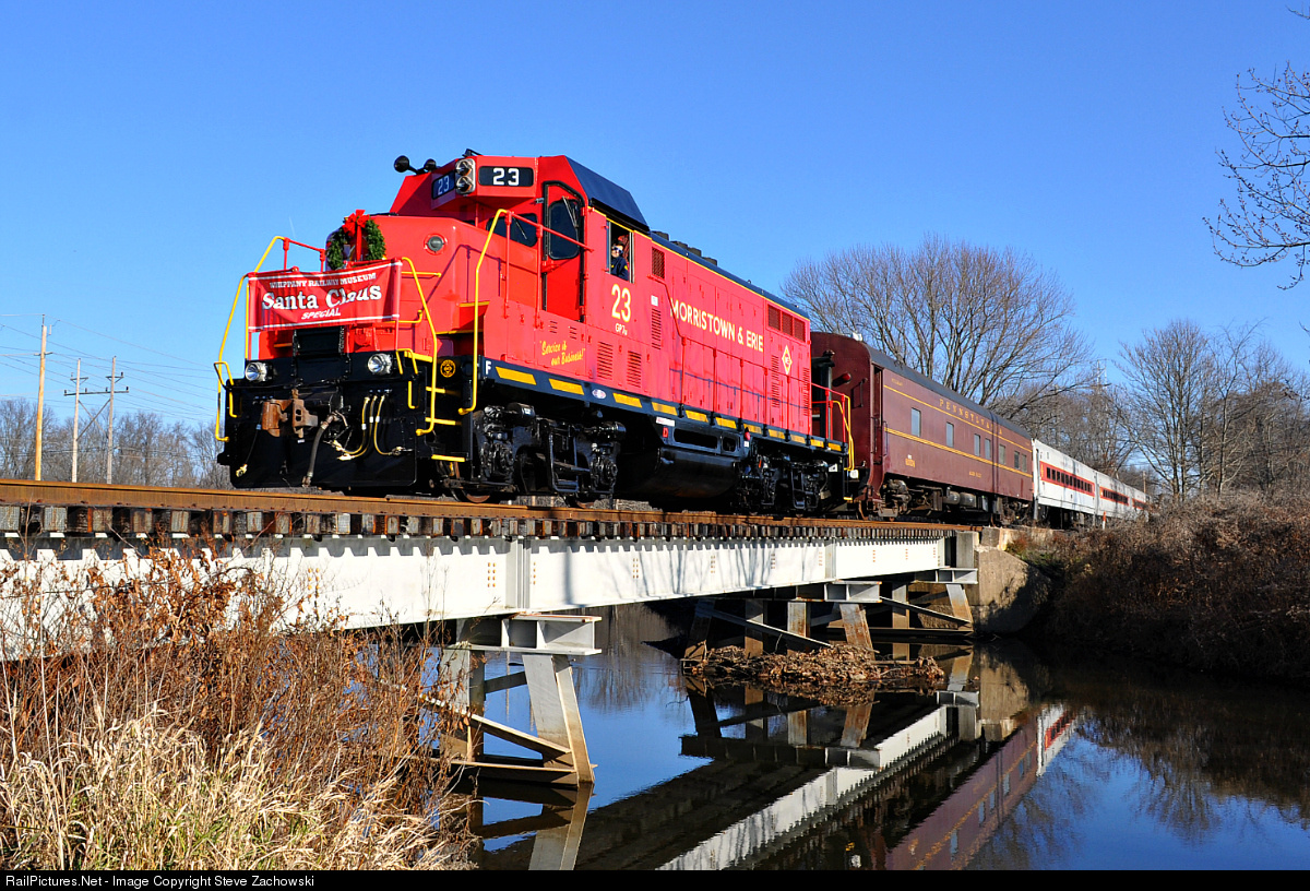 The Morristown & Erie's newest locomotive, ME 23 is seen on the point of the Santa Special. While the unit was painted a few months back the engine still had some mechanical issues which needed to be resolved before being put into service. A few months after its unveiling M&E 23 would be broken in on the Whippany Santa trains before heading to the Bayway refinery.