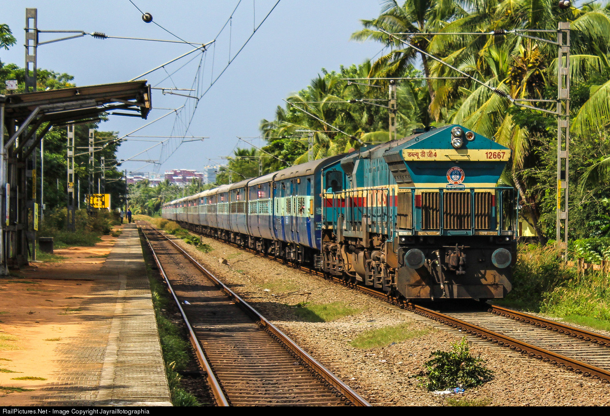 KALYAN WDG-4 (EMD GT46MAC ) leading H.Nizamuddin - Trivandrum Central Weekly Superfast Express through the coastal outskirts of Thiruvananthapuram City