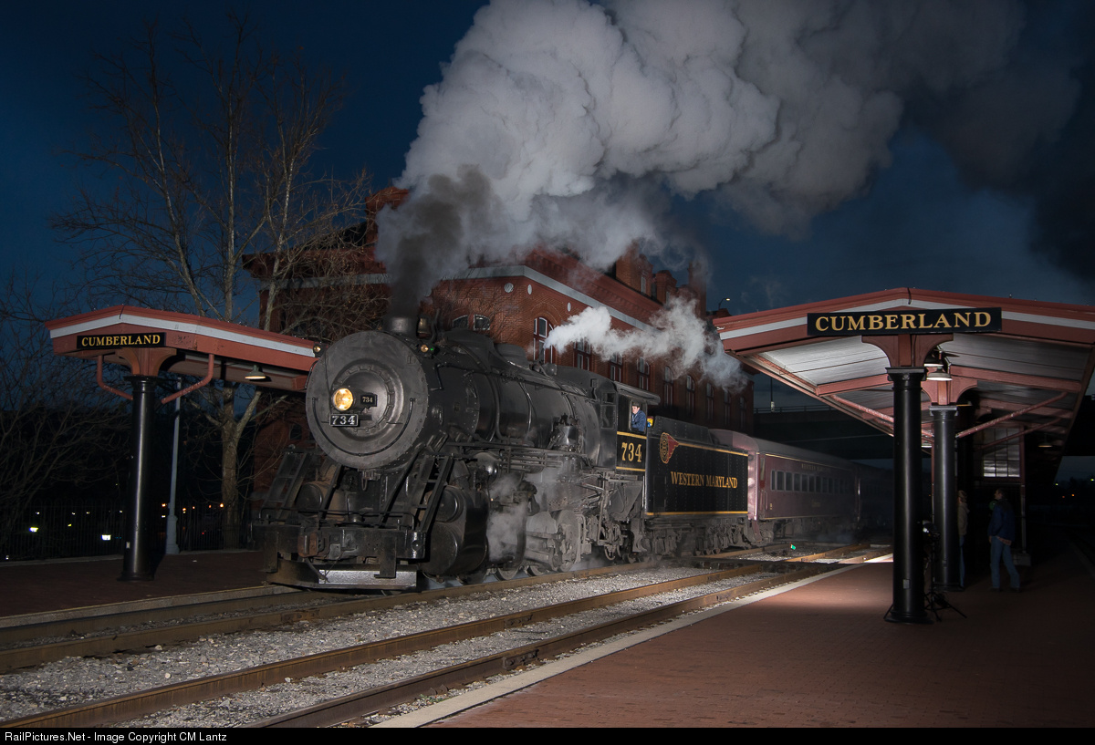 RailPictures.Net Photo: WMSR 734 Western Maryland Scenic Railroad Steam 2-8-0 at Cumberland, Maryland by CM Lantz