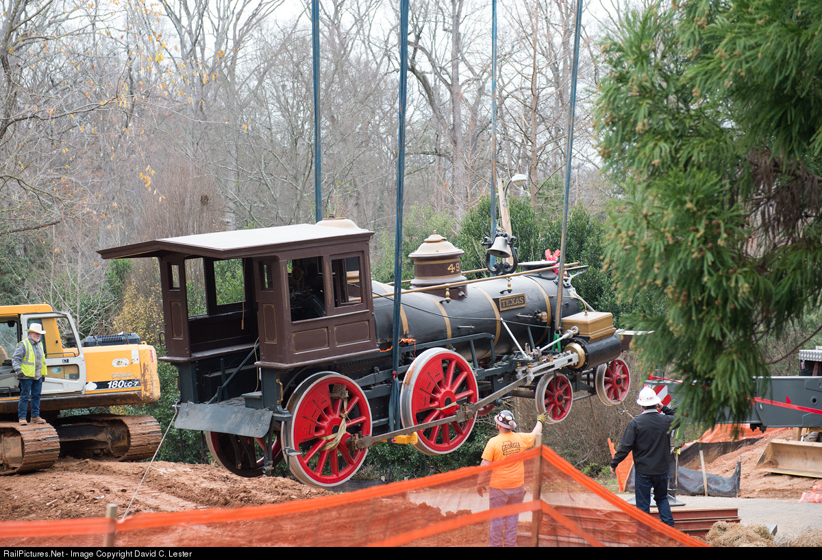 The Civil War locomotive Texas, involved in the Great Locomotive Chase with the General, is being removed from the Cyclorama Building where it has been displayed since 1927. The locomotive is heading to the North Carolina Transportation Museum, where it will be restored for static display at the Atlanta History Center by the Steam Operations Corporation of Birmingham, Alabama.