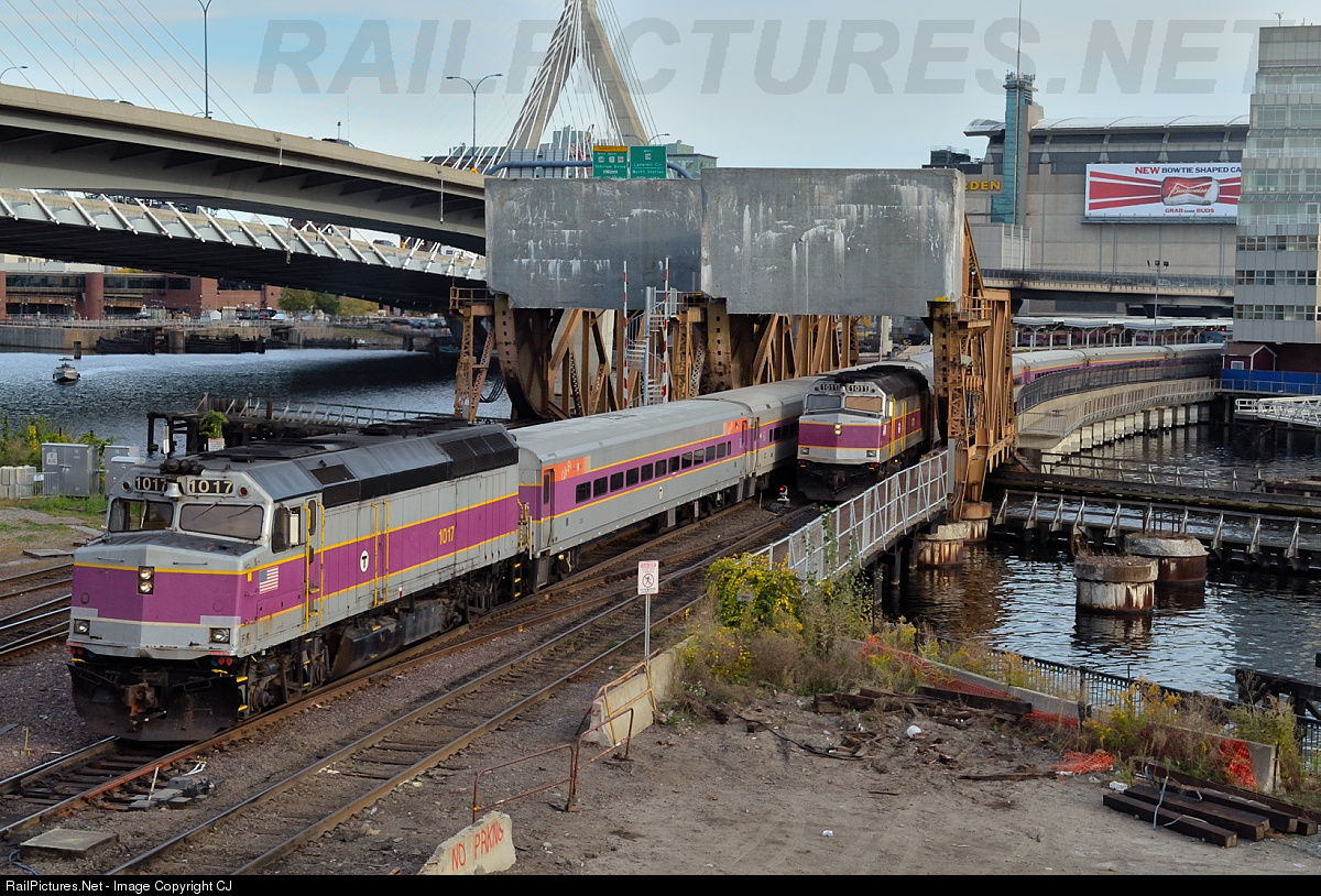 The evening rush hour traffic is at its height as two F40PHs race out of Boston's North Station. MBTX 1017 leads Mass Bay 329 to Lowell and MBTX 1011 leads a Fitchburg bound train. A scene that'll never happen again, as the MBTA has taken the entire roster of F40PHs out of active service. Their fate is unknown, but for many, their synonymous with the MBTA commuter rail, and always will be.