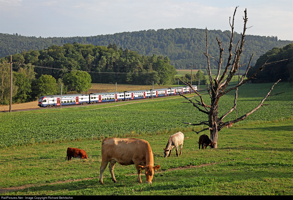 | Test run (reason unknown) with a Stadler Kiss between Seuzach and Etzwilen, a single track line with a lot of curves, ideal for measuring trains. |