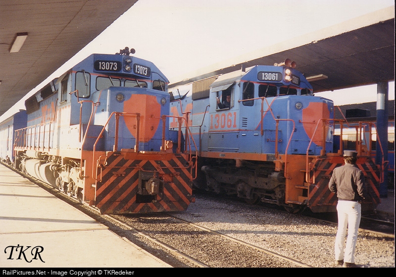 1st Class trains bound for Nuevo Laredo & Matamoros prepare to depart from Monterrey in January 1990.