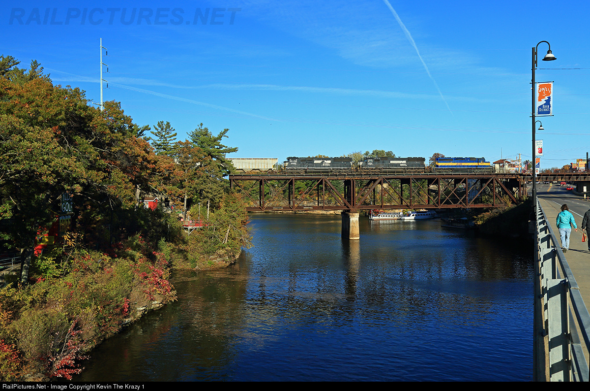 CP train 470 heads east across the Wisconsin River at Wisconsin Dells.