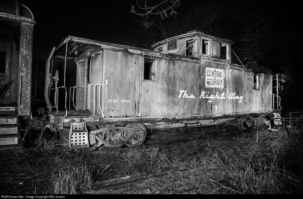 Off in the woods in the historic town of Hartwell, Georgia, an old Central of Georgia Railway caboose sits with former Hartwell Railroad 101, an excursion passenger car, on a quiet January night in 2016.