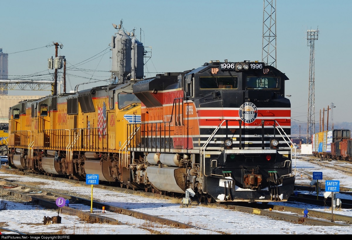 UP 1996 in the special Southern Pacific heritage scheme gets placed in the UP North Yard for what will be a short stay. It headed back north early the next morning.