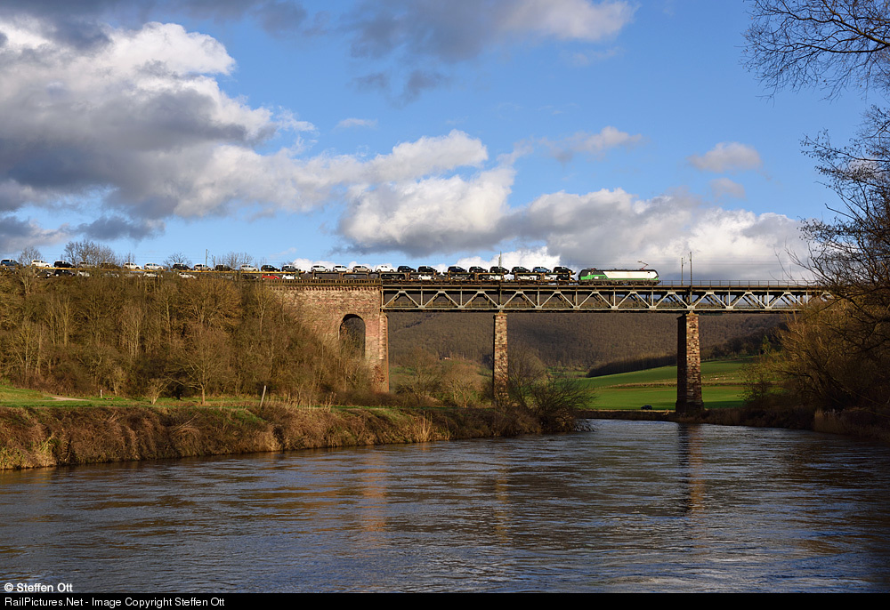 DGS 95315 Bremerhaven Kaiserhafen - München-Milbertshofen passing the river Werra.