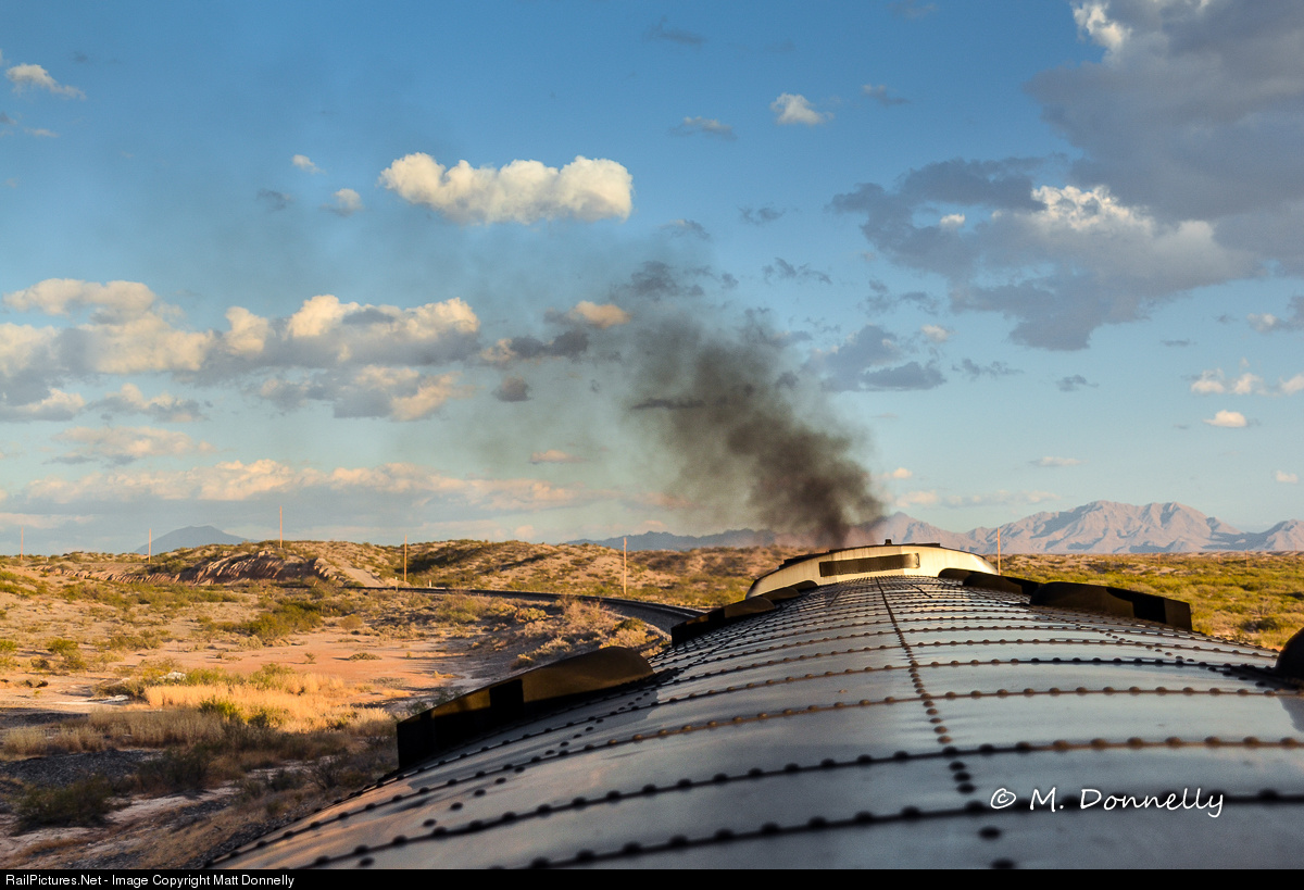 | The eastbound Sunset Limited notches up around a curve somewhere in west Texas. Today's train had an equipment substitution (Sleeper instead of Transdorm) which allowed this unique view. |